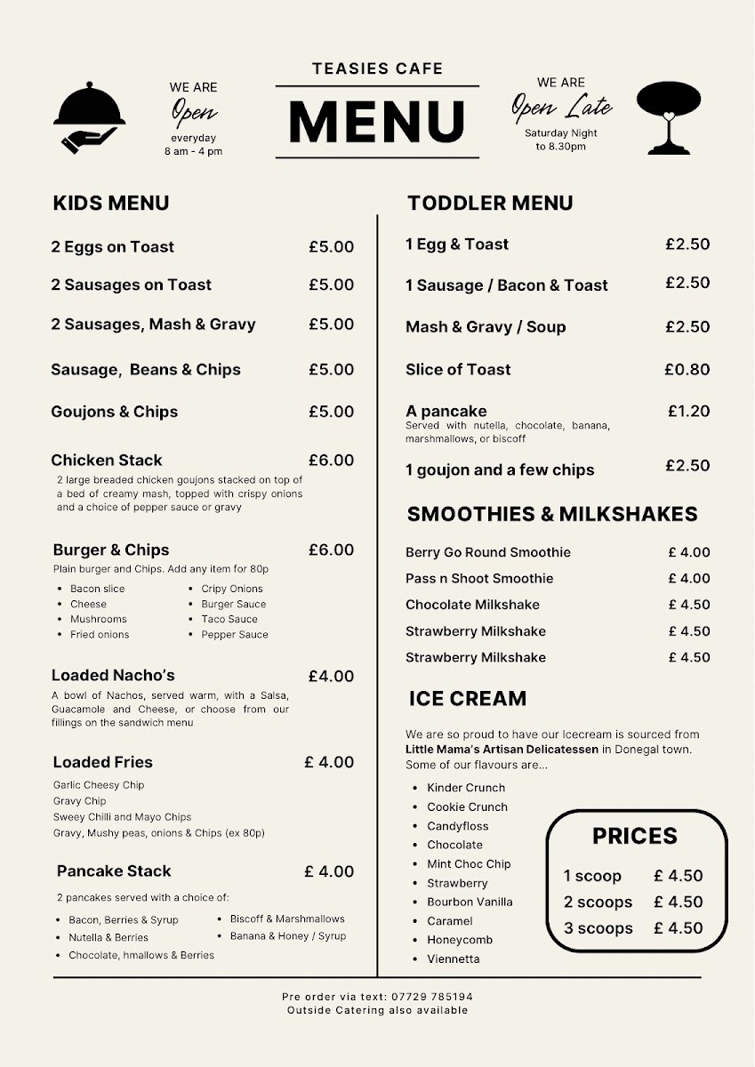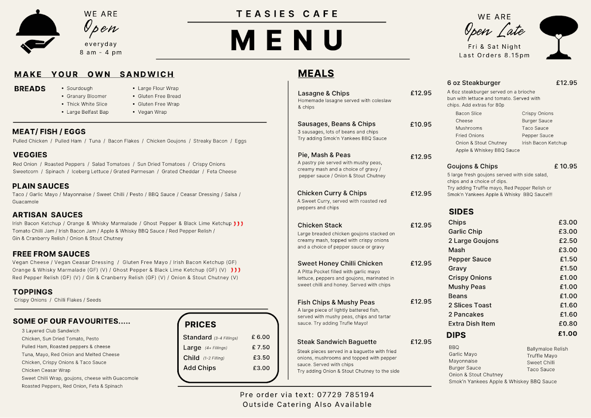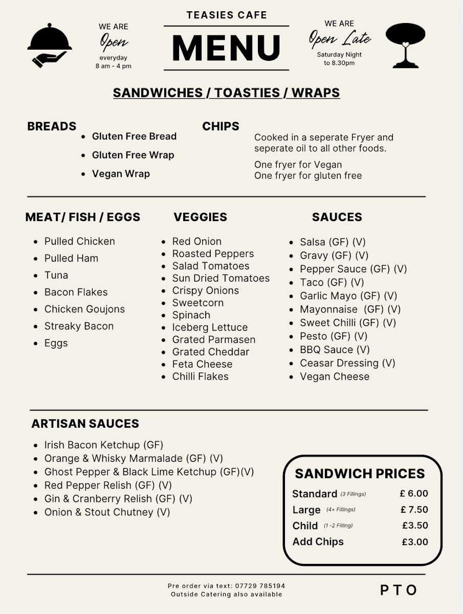 Don’t miss out on your chance to savor exceptional food coupled with warm, inviting service. Visit Teasies, located at 67 Main St, Ballygawley, Dungannon BT70 2HD, or for inquiries, feel free to call +44 7729 785194. A world of taste awaits—come hungry!